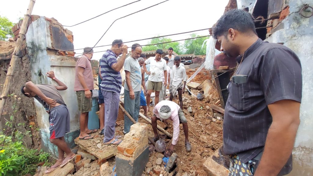मुसलाधार बारिश से पक्का मकान गिरा,दो मासूमों की मौत, मां घायल