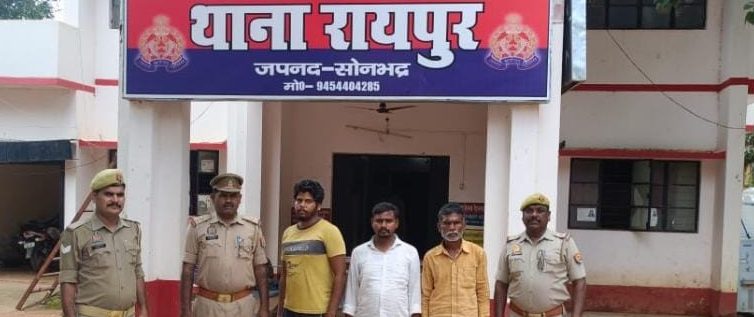 पुलिस अधीक्षक सोनभद्र अशोक कुमार मीणा द्वारा जनपद में वांछित अभियुक्तों की गिरफ्तारी हेतु चलाये जा रहे अभियान के क्रम में, अपर पुलिस अधीक्षक त्रिभुवन नाथ त्रिपाठी के निर्देशन में एवं क्षेत्राधिकारी सदर रणधीर कुमार मिश्रा के निकट पर्यवेक्षण मे थाना रायपुर पुलिस द्वारा थाना स्थानीय पर मु0अ0सं0 106/2025 धारा 3(1) उ0प्र0 गैंगस्टर अधि0 से सम्बन्धित अभियुक्तगण, शेरशाह पुत्र कमरुद्दीन अन्सारी निवासी कम्हारडीह थाना रॉबर्ट्सगंज जनपद सोनभद्र, विपिन यादव उर्फ मुलायम सिंह यादव पुत्र लल्लन यादव निवासी ग्राम सेमरिया थाना रायपुर जनपद सोनभद्र को मु0अ0सं0-108/2025 धारा 3(1) गैंगेस्टर एक्ट से सम्बन्धित अभियुक्त, पन्नालाल उर्फ बबलू पुत्र हरिदास पासवान निवासी ग्राम आमडीह थाना रायपुर जनपद सोनभद्र को गिरफ्तार कर आवश्यक विधिक कार्यवाही कर न्यायालय भेजा गया।
