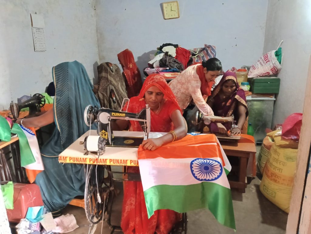 यूपी की योगी सरकार द्वारा चलाए जा रहे ‘हर घर तिरंगा’ अभियान में स्वयं सहायता समूह की महिलाओं को जोड़ा गया है, जो न केवल राष्ट्र सेवा में योगदान दे रही हैं, बल्कि आत्मनिर्भरता की दिशा में भी सशक्त कदम बढ़ा रही हैं। काशी की लगभग 2600 से अधिक महिलाएं दिन-रात मेहनत करके 4 लाख 76 हज़ार 500 से अधिक राष्ट्रीय ध्वज तैयार कर रही हैं, जिन्हें 15 अगस्त से पहले हर घर तक पहुंचाया जाएगा। मुख्य विकास अधिकारी हिमांशु नागपाल ने बताया कि एनआरएलएम से जुड़ीं लगभग 400 से अधिक स्वयं सहायता समूह की करीब 2000 महिलाएं 2 लाख 25 हजार झंडा बनाने के कार्य में लगी है। इस कार्य से महिलाओं को औसतन 3000 से 4000 की आमदनी होगी। डूडा से जुड़ीं 68 स्वयं सहायता समूह की 680 महिलाएं भी 2 लाख 51 हजार 500 झंडा तैयार कर रही हैं।