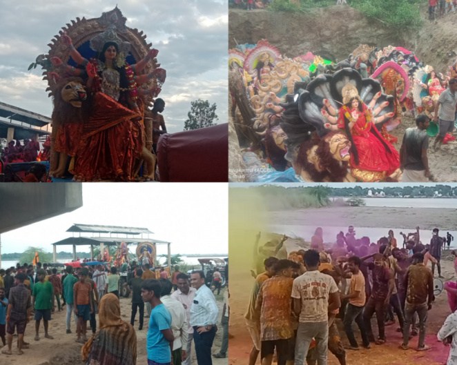 गंगा घाट में नम आंखों से मां दुर्गा को विदाई, धूमधाम से हुआ प्रतिमाओं का विसर्जन