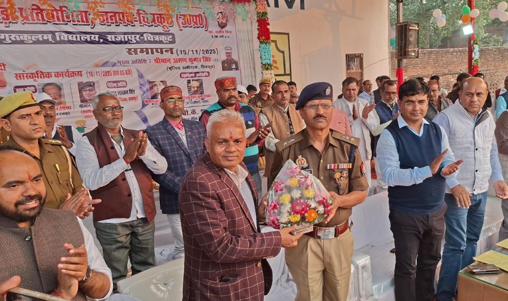 विशिष्ट गुरूकुलम राजापुर प्रांगण में आयोजित दो दिवसीय जनपदीय बाल क्रीडा प्रतियोगिता का बुधवार को समापन एसपी अरूण कुमार सिंह ने किया। प्रतियोगिता में 220 अंक प्राप्त कर रामनगर ब्लाक प्रथम स्थान, 143 अंक प्राप्त कर पहाडी द्वितीय तथा 139 अंक प्राप्त कर कर्वी तृतीय स्थान प्राप्त किया। सभी विजेता चैम्पियन खिलाडियों को पुरस्कार देकर सम्मानित किया गया। समापन समारोह का शुभारम्भ एसपी अरूण कुमार सिंह, एसडीएम मऊ राम ऋषि रमन, एसडीएम राजापुर फूलचन्द्र तथा बीएसए बीके शर्मा ने मां सरस्वती के चित्र पर माल्यार्पण एवं दीप प्रज्ज्वलित कर किया। एसपी ने प्रतिभागी बच्चों से कहा कि जितना जरूरी पढाई लिखाई का है उससे कहीं ज्यादा खेलकूद आवश्यक है। खेलकूद शिक्षा की शोभा बढाते हैं। खेलो के प्रति निश्चित रूप से रूझान बढाना होगा। एसपी ने कहा कि पुलिस के प्रति समाज की जैसी भी धारणा हो लेकिन जिस तरह चरित्र का सत्यापन पुलिस करती है उसी तरह मूल्यांकन का अधिकार सिर्फ गुरूजनों के पास है। खेल शिक्षा का अनिवार्य अंग है लेकिन धीरे धीरे विद्यालयों में इसकी महत्ता घटती जा रही है। शिक्षक बच्चों को खेल के प्रति रूचि बढाने का प्रयास करें। शिक्षक नेताओं को शिक्षा के प्रति सोचना चाहिए। बीएसएए बीके शर्मा ने कहा कि उन्होंने कई जनपदों में आयोजन देखा। लेकिन ऐसा ऐतिहासिक आयोजन पहले नही देखा। अन्य जनपदों के आयोजन तथा चित्रकूट के आयोजन में जमीन आसमान का अंतर है। जिलाध्यक्ष अखिलेश पाण्डेय के नेतृत्व में शिक्षक हित के साथ साथ छात्र हित का भी सहयोगात्मक कार्य हो रहा है। जो प्रशंसनीय है। उन्होंने कहा कि उत्तर प्रदेशीय प्राथमिक शिक्षक संघ के पदाधिकारियों, व्यायाम शिक्षकों के समर्पण सहयोग तथा मेहनत के कारण ऐतिहासिक क्रीडा प्रतियोगिता सम्पन्न हुई। दो दिन तक सभी बच्चों व शिक्षकों ने कडी मेहनत कर इस अयोजन को ऐतिहासिक बनाया। सभी अतिथियों व बच्चों व शिक्षकों का आभार प्रदर्शन रैली के संयोजक खण्ड शिक्षाधिकारी रामनगर एनपी सिंह ने जताया। ब्लाक रामनगर के बच्चों द्वारा पीटी प्रदर्शन किया गया। प्रतियोगिता में शनि कुमार ब्लाक चित्रकूट तथा शुभम मानिकपुर संयुक्त रूप चैम्पियन रहे। रामनगर ब्लाक 220 प्राप्त कर प्रथम स्थान, 143 अंक प्राप्त कर पहाडी द्वितीय तथा 139 अंक प्राप्त कर्वी ब्लाक तीसरा स्थान प्राप्त किया। सभी विजेता छात्रों व चैम्पियन खिलाडियों को एसपी व अतिथियों द्वारा पुरस्कार देकर सम्मानित किया गया। कार्यक्रम का संचालन शिक्षक साकेत बिहारी शुक्ला ने किया। इस मौके पर वित्त एवं लेखाधिकारी वेद प्रकाश सिंह, खण्ड शिक्षा अधिकारी रामनगर एनपी सिंह , पहाड़ी राजेश कुमार, मऊ केडी पाण्डेय, कर्वी शंशाक शेखर, नगर प्रवीण दीक्षित, 