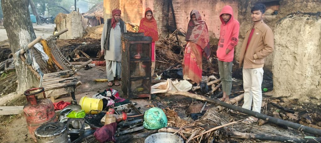 कबीरपुर सुकुरुल्ला में भीषण आग से गरीब परिवार का आशियाना हुआ खाक