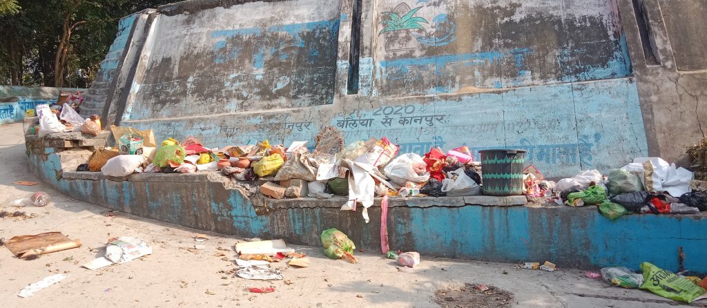 -नमामि गंगे के निरीक्षणों के बाद भी उत्तरवाहिनी गंगा तट पर लगा कूड़े का अंबार।