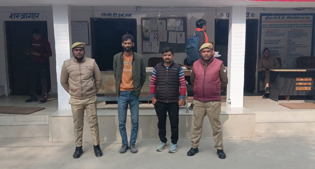 हुसैनगंज थाना क्षेत्र के फिरोजपुर में मारपीट और फायरिंग की गंभीर घटना के मामले में पुलिस ने त्वरित कार्रवाई करते हुए दो वांछित अभियुक्तों को गिरफ्तार कर लिया है। देवकरण सिंह पुत्र स्वर्गीय दिवाकर सिंह, निवासी फिरोजपुर थाना हुसैनगंज जनपद फतेहपुर द्वारा थाने पर लिखित तहरीर दी गई थी। तहरीर में आरोप लगाया गया कि अभियुक्तगण द्वारा योजनाबद्ध तरीके से लाठी, डंडा व रॉड लेकर जान से मारने की नीयत से हमला किया गया। बीच-बचाव करने आए भाई उदयकरण व ऋतुराज तथा चाचा छत्रपाल सिंह के साथ भी गाली-गलौज व मारपीट की गई। इस दौरान आरोपियों द्वारा तमंचे से फायरिंग कर जान से मारने की धमकी भी दी गई। तहरीर के आधार पर थाना हुसैनगंज में मु0अ0सं0 340/2025 धारा 109(1), 191(2), 191(3), 190, 352, 351(2) बीएनएस के अंतर्गत मुकदमा पंजीकृत किया गया। पुलिस अधीक्षक फतेहपुर के निर्देश पर वांछित अभियुक्तों की गिरफ्तारी हेतु अभियान चलाया गया। अपर पुलिस अधीक्षक के निर्देशन एवं क्षेत्राधिकारी सदर के निकट पर्यवेक्षण में हुसैनगंज थाना पुलिस टीम ने दिनांक 16 दिसंबर 2025 को अथक प्रयास व सुरागरसी के आधार पर जितेंद्र सिंह उर्फ जीतू पुत्र रामनरेश सिंह (40), हिमांशु सिंह उर्फ राज पुत्र आनंद सिंह (26) निवासीगण ग्राम फिरोजपुर थाना हुसैनगंज को गिरफ्तार किया।