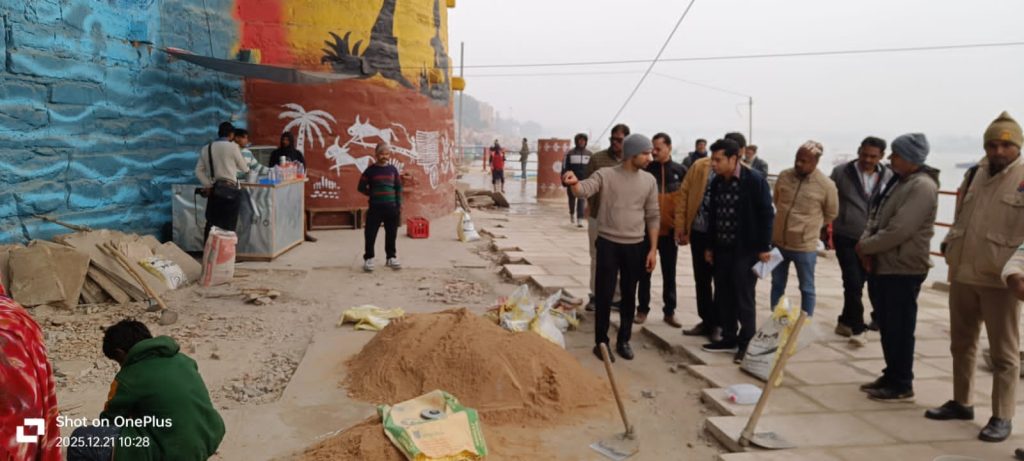 इस दौरान घाटों पर तैनात बीट सफाई कर्मचारियों का स्थलीय सत्यापन किया गया तथा घाट पाथवे के चल रहे रिनोवेशन कार्यों का जायजा लेते हुए उन्हें शीघ्र पूर्ण करने के निर्देश दिए गए। निरीक्षण के समय जोनल अधिकारी दशाश्वमेध/कोतवाली मृत्युंजय नारायण मिश्र, अधिशासी अभियंता (सिविल), अधिशासी अभियंता जल निगम, सहायक अभियंता जलकल, अवर अभियंता मार्ग प्रकाश, संबंधित सफाई निरीक्षक सहित अन्य अधिकारी एवं कर्मचारी मौजूद रहे।