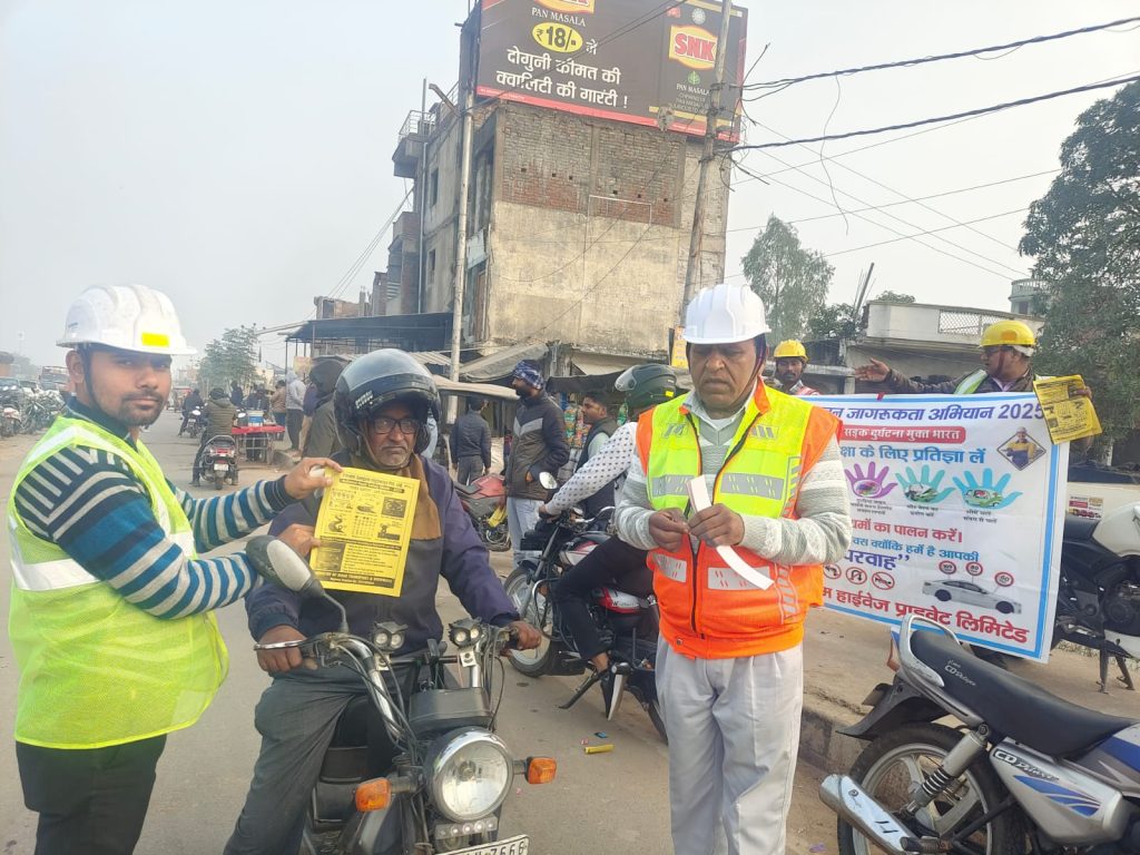 शासन की सर्वोच्च प्राथमिकता सड़क सुरक्षा जागरूकता अभियान के तहत पुलिस अधीक्षक फतेहपुर अनूप कुमार सिंह भारतीय राष्ट्रीय राजमार्ग प्राधिकरण के प्रोजेक्ट डायरेक्टर पंकज यादव के निर्देशानुसार आज सोमवार को परिवहन विभाग फतेहपुर त्रिवेणी संगम हाइवे के प्रोजेक्ट मैनेजर राकेश भारद्वाज अविनाश द्विवेदी, अतुल यादव के मार्गदर्शन में सड़क सुरक्षा जीवन रक्षा जागरूकता अभियान का आयोजन किया गया। इस मौके पर वरिष्ठ सीएसआर एवं सुरक्षा मैनेजर फिरोज़ खान ने कहा दुर्घटना से बचना है तो दो पहिया वाहनों को हेलमेट,चार पहिया वाहनों को शीट बेल्ट आदि लगाना जरूरी। साथ ही ट्रैफिक नियमों की पालना करे। साथ ही अपने नाबालिग बच्चों को वाहनों की चाबी न दें,फिरोज खान ने बताया कि प्रत्येक वर्ष शीत ऋतु के मौसम में राजमार्गों सड़कों पर कम दृश्यता होने के कारण सड़क दुर्घटनाएं बढ़ जाती हैं सतर्क होकर वाहन चलाएं अपने वाहनों के पीछे रेडियम स्टिकर जरूर लगाएं जिससे पीछे से आने वाले वाहन को रेडियम रिफलेक्टर दूर से दिखाई देंगे जिससे सड़क दुर्घटना होनी की संभावना काफी कम हो जायेगी। आगे बताया कि पिछले चार वर्षों में अभी तक तीन लाख से ज्यादा लोगो के वाहनों एवं हेलमेट,ट्रैक्टर पर रेडियम स्टिकर लगाकर जागरूक किया गया है और आगे भी निरंतर दैनिक आधार पर सड़क सुरक्षा अभियान जारी रहेगा। इस मौके पर काफी संख्या में आम जन उपस्थित रहे।