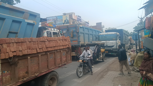 7 मील-डलमऊ मार्ग पर भोर से भीषण जाम, एम्बुलेंस-रोडवेज फंसी