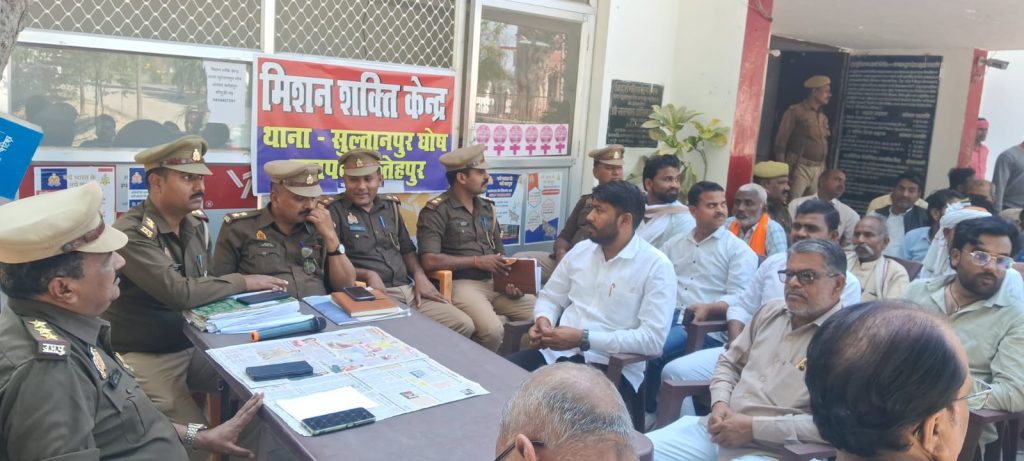 सुल्तानपुर घोष थाने में पीस कमेटी की बैठक आयोजित की गई इस बैठक का मुख्य उद्देश्य आगामी होली व रमजान के त्योहारों को शांतिपूर्ण ढंग से संपन्न कराना था। बैठक में नायाब तहसीलदार ऐराया अरविंद कुमार मुख्य अतिथि के रूप में उपस्थित रहें,जबकि थाना प्रभारी निरीक्षक तेज बहादुर सिंह चंदेल की अध्यक्षता में बैठक आयोजित की गई। प्रशासन ने इन पर्वों को सकुशल मनाने के लिए अलर्ट जारी किया है बैठक के दौरान होली जलाने से संबंधित भूमि विवादों की शिकायतों को गंभीरता पूर्वक संज्ञान में लेकर कुछ शिकायतों को उनका निराकरण किया गया और थाना दिवस के दिन सभी समस्याओं का निराकरण किया जाएगा।