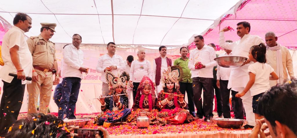 कार्यक्रम की शुरुआत राधा-कृष्ण की मनमोहक झांकी से हुई, जिसने उपस्थित लोगों को भक्ति भाव से सराबोर कर दिया। कलाकारों द्वारा भगवान श्रीकृष्ण और राधा के जीवंत स्वरूप की प्रस्तुति ने दर्शकों को मंत्रमुग्ध कर दिया। इसके बाद आयोजित रंगारंग सांस्कृतिक कार्यक्रमों में लोकगीत, फाग और पारंपरिक नृत्यों की प्रस्तुतियों ने समारोह में चार चांद लगा दिए। महिलाएं और युवा गीत-संगीत की धुनों पर झूमते नजर आए।